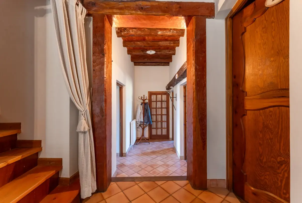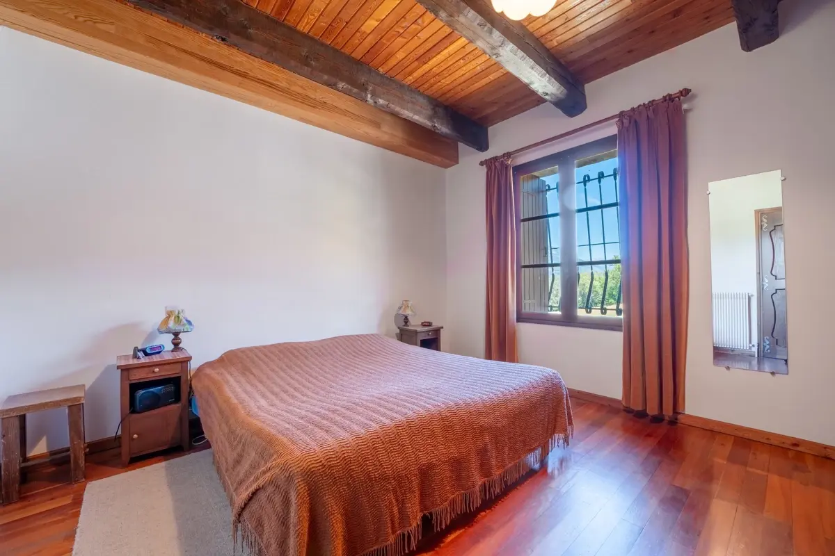Sur une parcelle de 1214m², cette maison de 200m² de surface habitable et de 340m² de surface au sol, offre un séjour avec cheminée, une cuisine séparée avec cheminée, cinq chambres et trois salles de bains. Le tout est chauffé par des radiateurs alimentés par une chaudière à fuel.