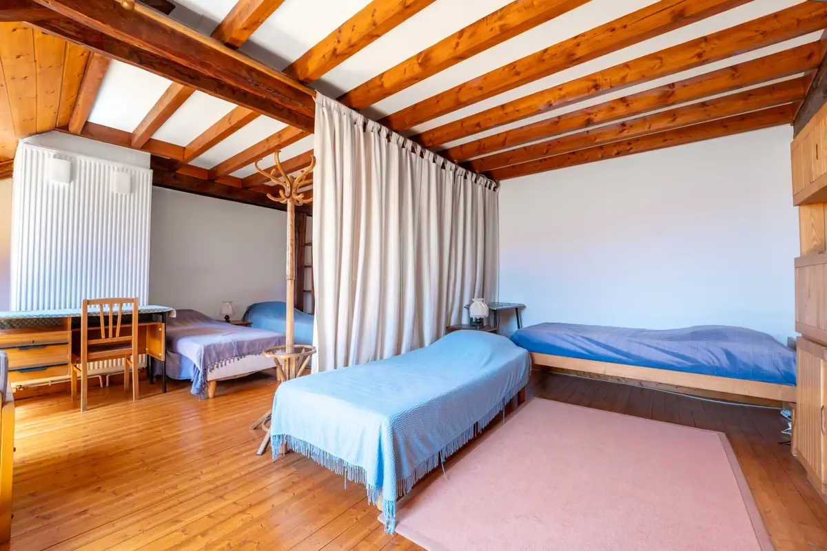 Le rez-de-chaussée comprend une chambre avec salle de bain. À l'étage, vous trouverez trois chambres supplémentaires et un dortoir.