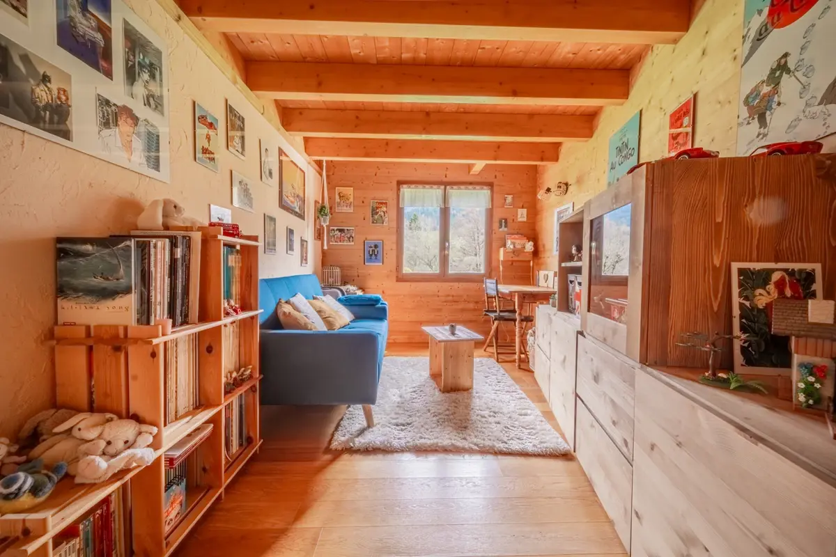 Maison de 186 m² habitable offrant de beaux volumes et une distribution optimisée. Au rez-de-chaussée : un vaste séjour lumineux ouvert sur une cuisine entièrement équipée (électroménager haut de gamme, plan quartz) et donnant accès aux terrasses extrieures. Le poêle à bois central et le chauffage électrique au sol dans les espaces de vie garantissent un confort optimal.