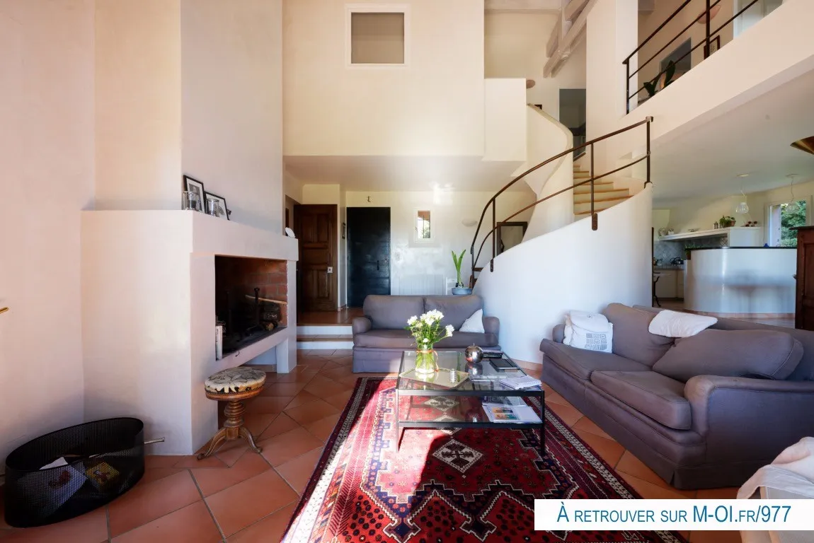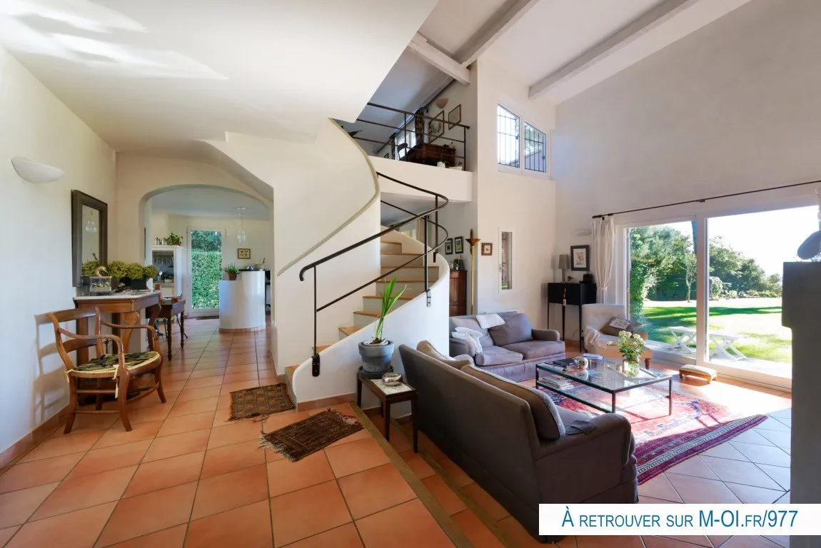 La villa offre de beaux volumes et profite d'une vue dégagée