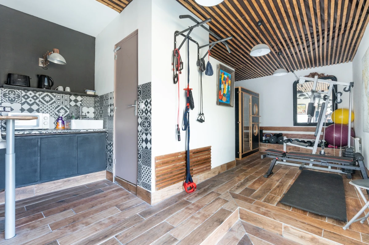 Cette villa comprend un garage pratique, le luxe d'une piscine privée et des moments bien-être garantis grâce au sauna et à l'espace fitness dédié.