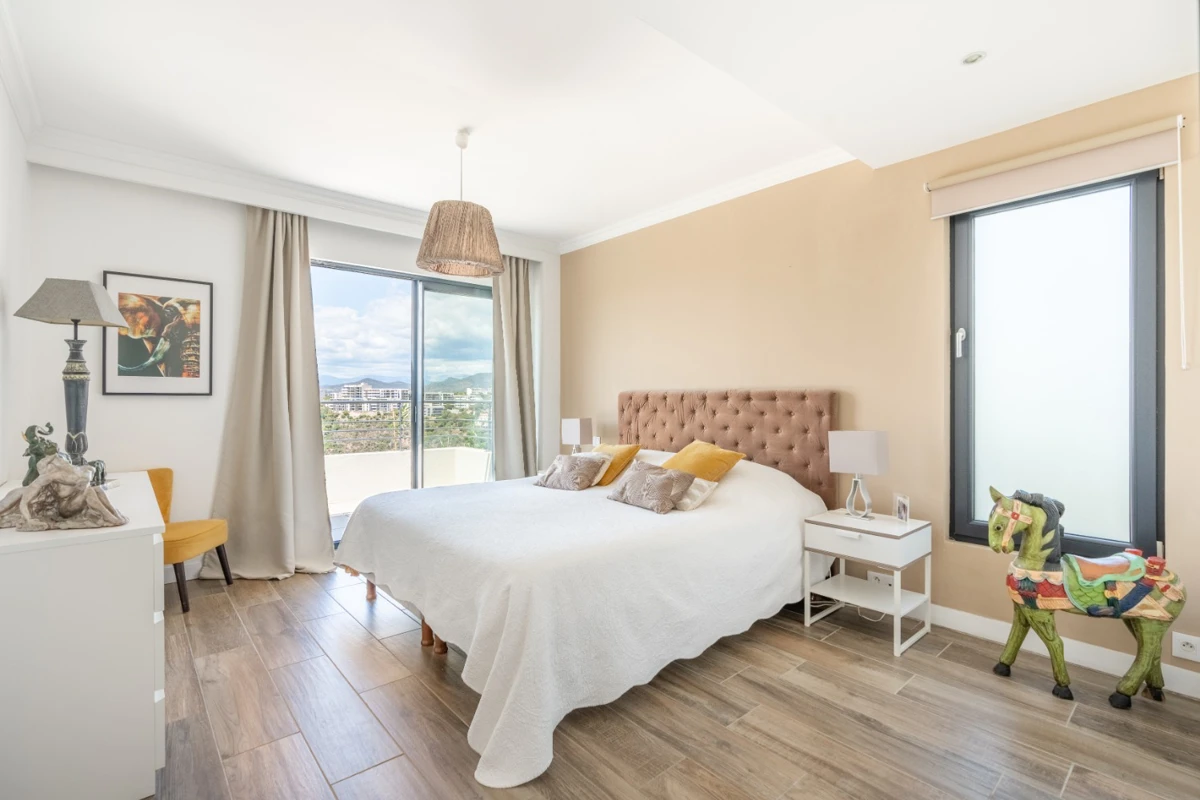 Nichée dans un quartier résidentiel prisé, à deux pas du centre-ville, des commerces et de la mer, cette demeure offre une vue panoramique inégalée sur les montagnes environnantes et le golf.