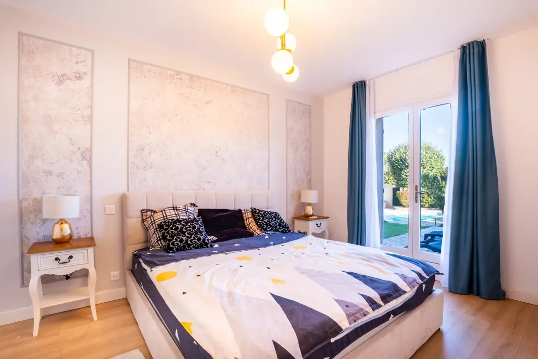 Profitez d'un jardin paysager paisible et privé, agrémenté d'une cuisine d'été pour savourer pleinement les journées ensoleillées, ainsi qu'une piscine aux formes libres pour des moments de détente inoubliables.