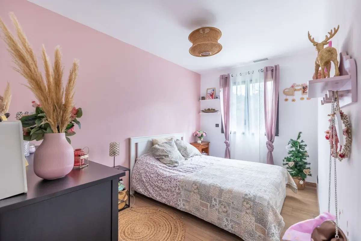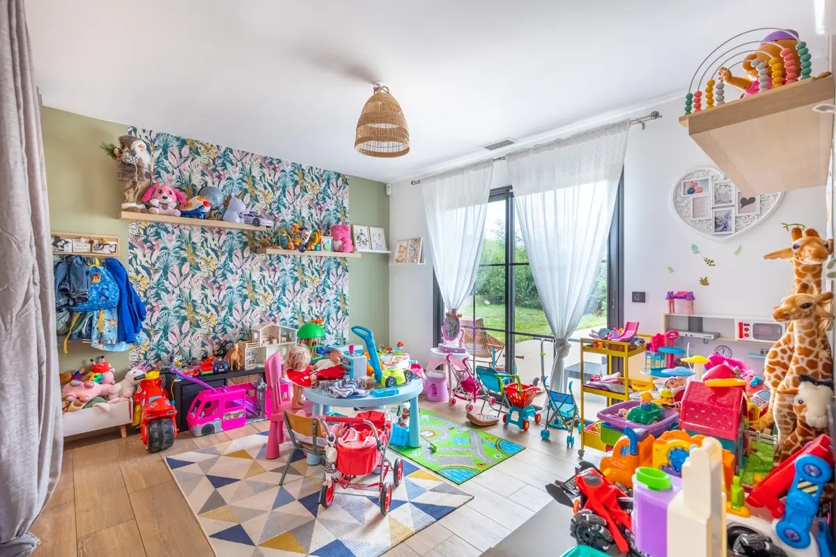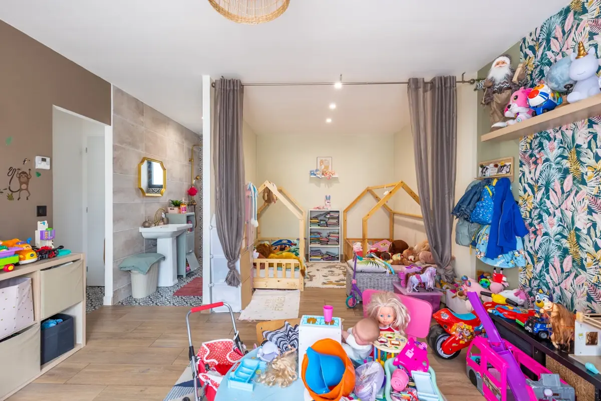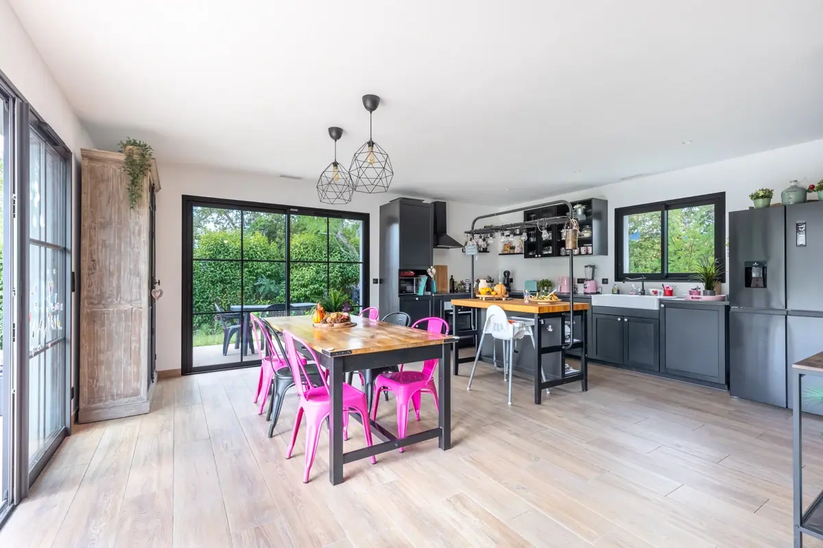 Avec ses 108m², cette villa comprend un grand salon lumineux de 47m², avec une cuisine équipée ouverte et de grandes baies vitrées. Vous trouverez également un cellier, un dégagement, et la partie nuit se compose de trois chambres dont une suite parentale avec dressing et salle d'eau. L’agencement propose aussi une deuxième salle d'eau et un WC indépendant.