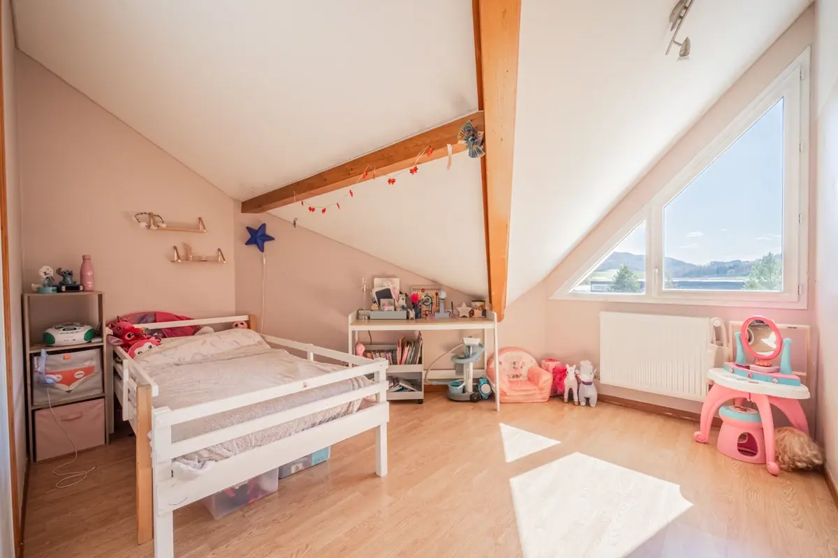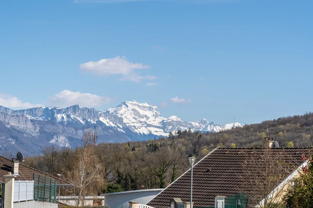 Maison située dans un environnement verdoyant, à 15 minutes d'Annecy et 30 minutes de Genève. Bus Sibra ligne 30 au pied du lotissement, axes routiers rapides pour les déplacements quotidiens. Proximité du chef-lieu avec boulangerie, pharmacie, collèges et écoles accessibles à pied.