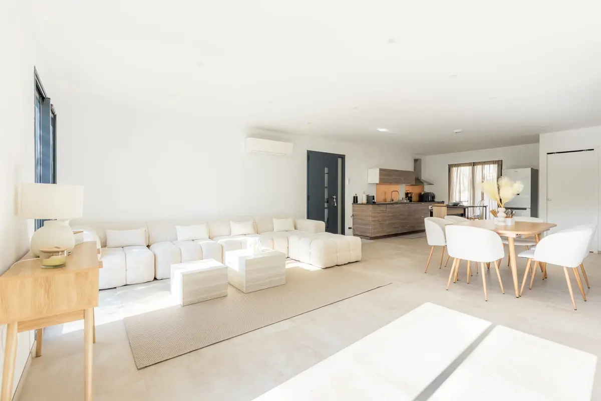 Un grand garage fermé permet de garer jusqu'à deux véhicules. Construite avec des matériaux de qualité et dans un état neuf, cette maison est prête à vous accueillir sans travaux nécessaires.