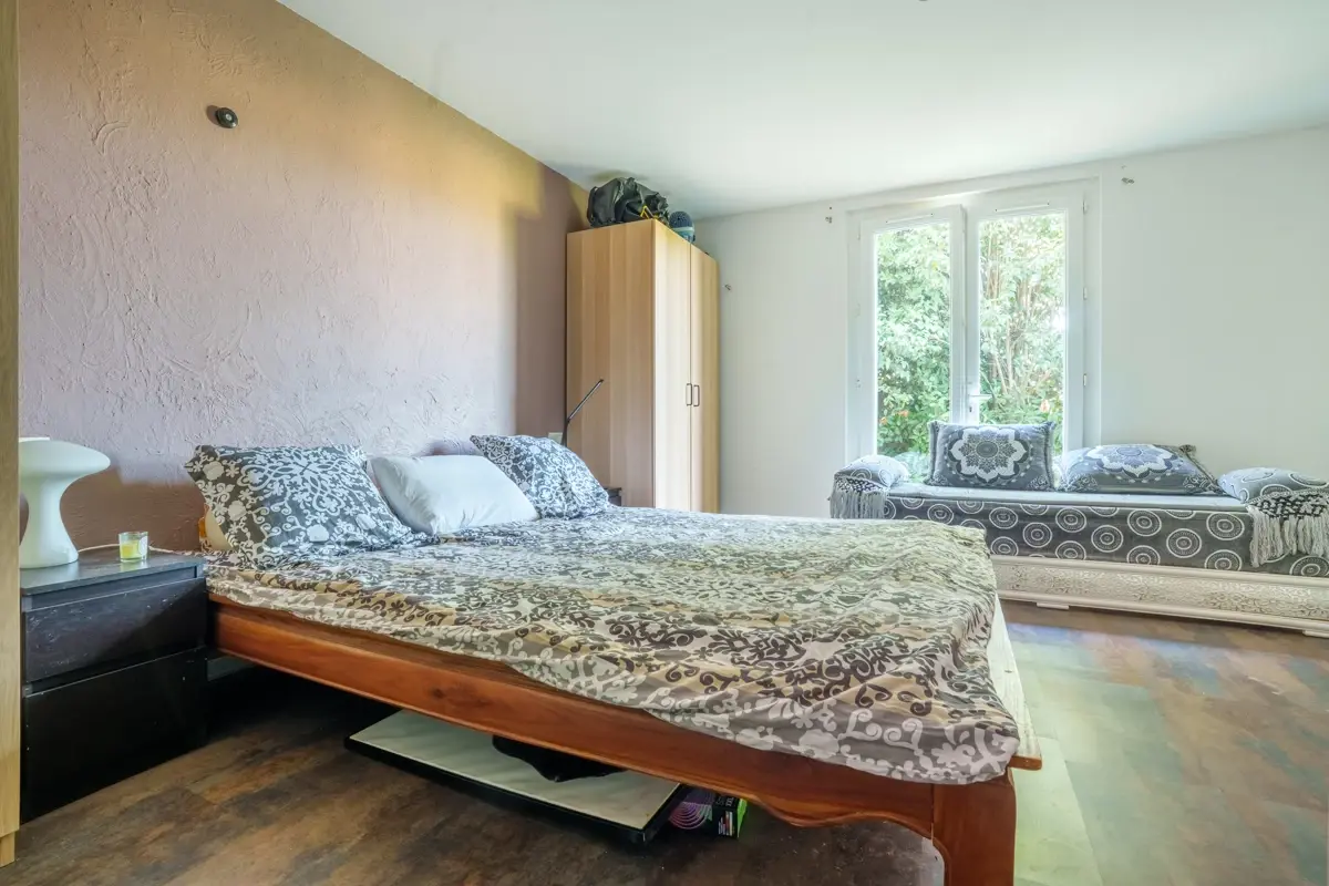 Construite en 1980, la maison de 160m2 comprend une cuisine équipée, un double séjour ouvert sur une terrasse ombragée. Le rez-de-chaussée propose une suite parentale avec salle d'eau privative, deux chambres partageant une salle de bain, et un WC séparé. À l'étage, deux chambres spacieuses, dont une avec terrasse privative, ainsi qu'une seconde salle de bain.