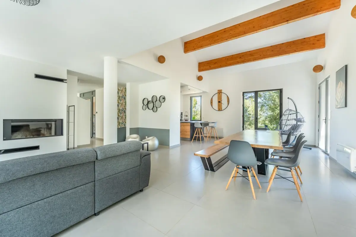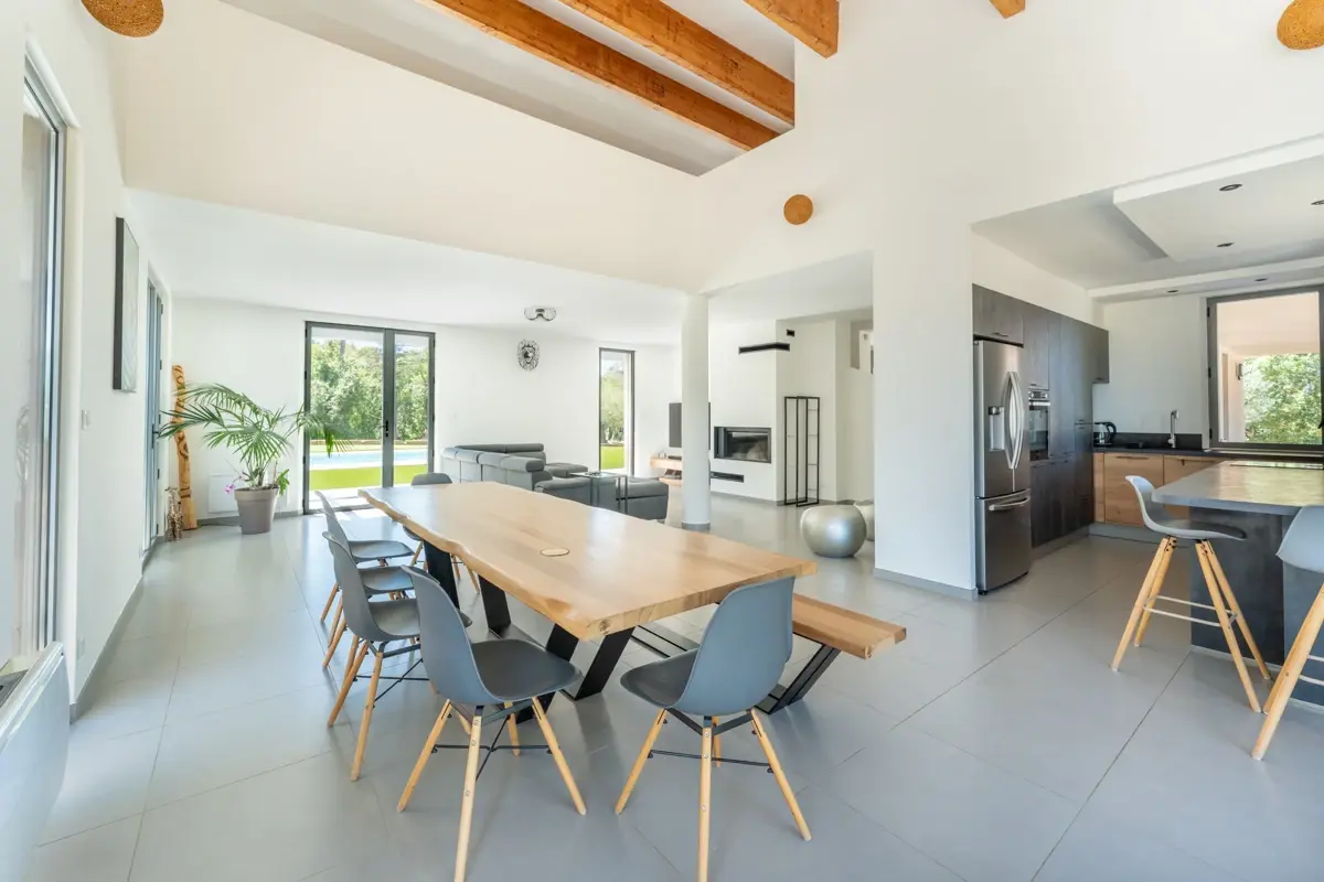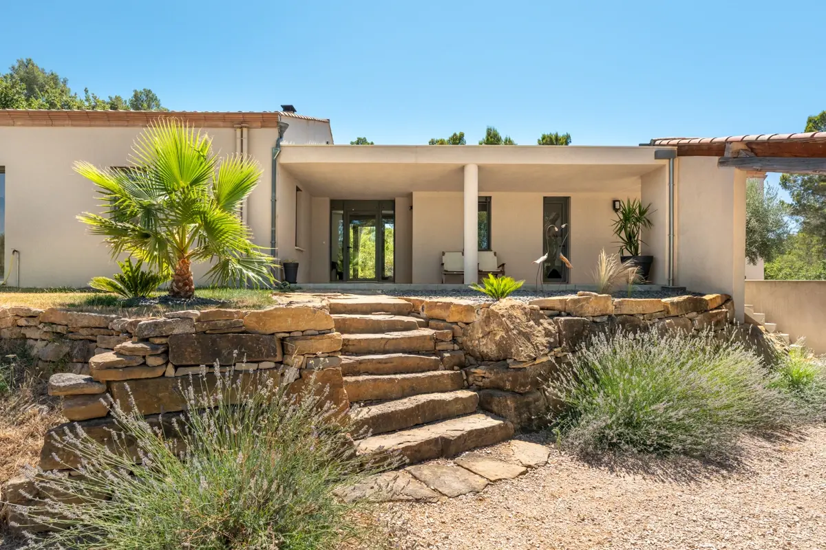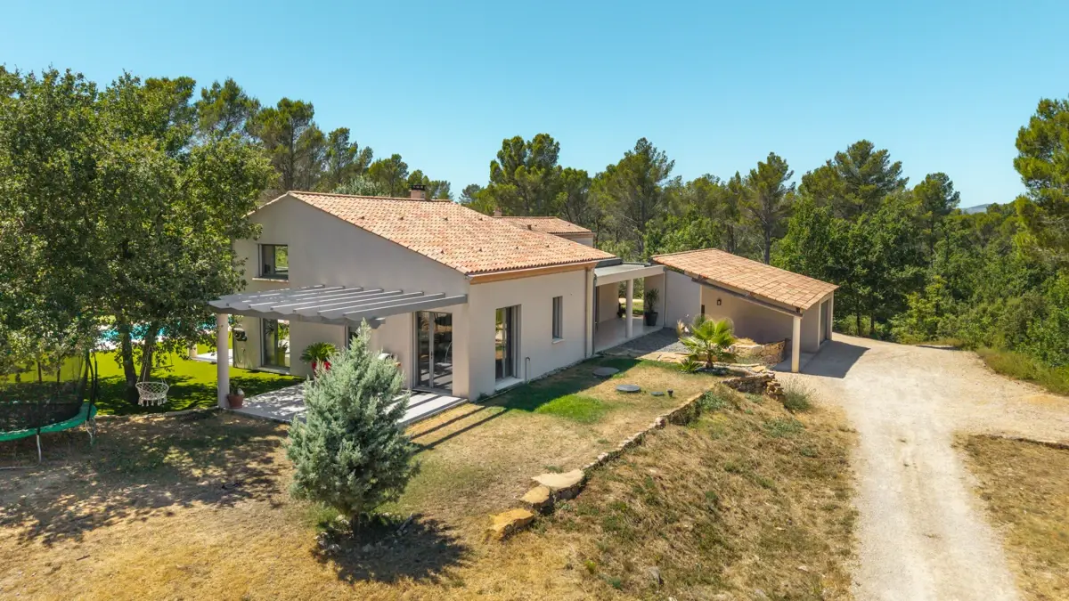 L’Office Immobilier de Trets vous présente à la vente cette villa moderne avec dépendance, piscine et vue sur la Sainte-Victoire.