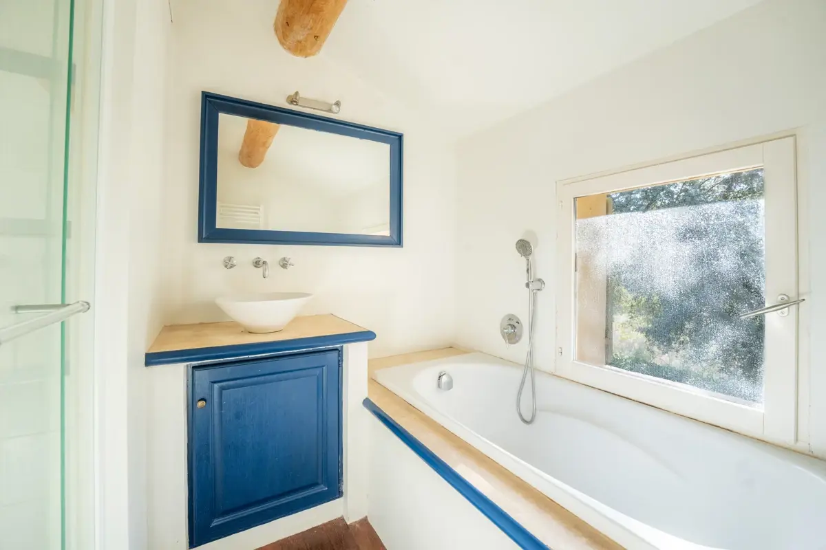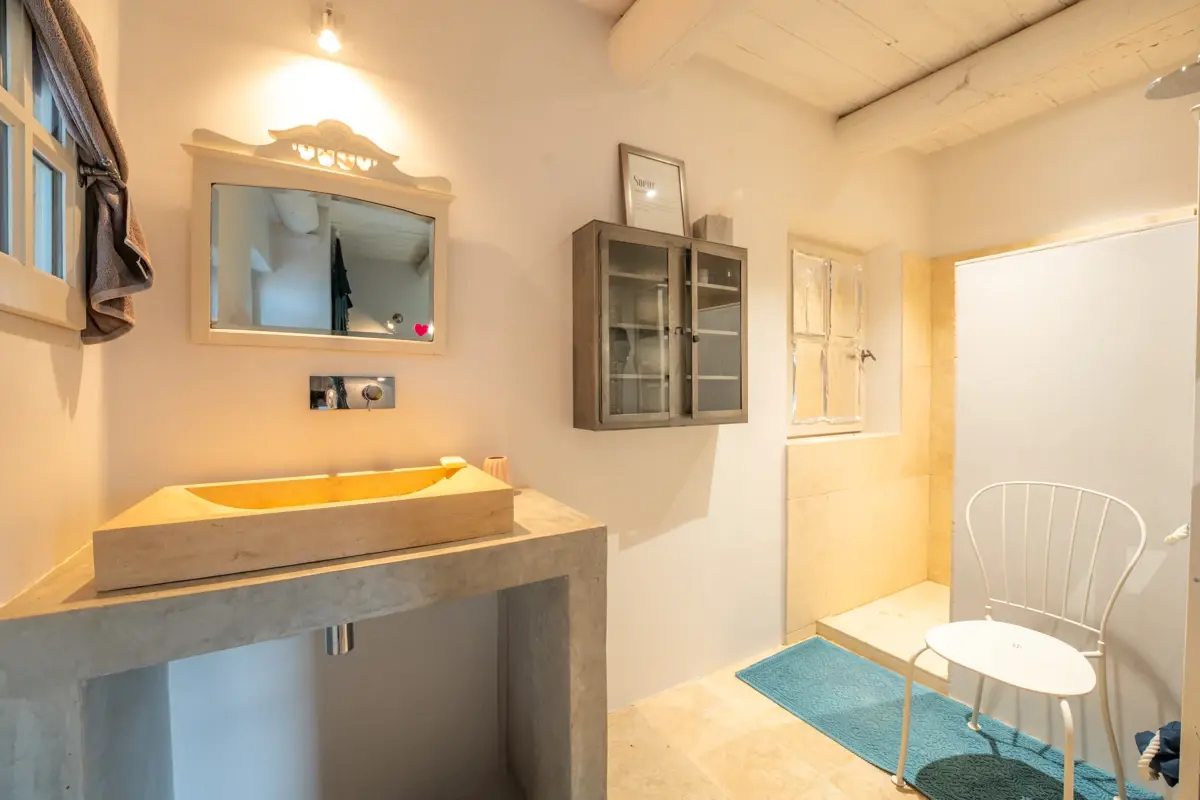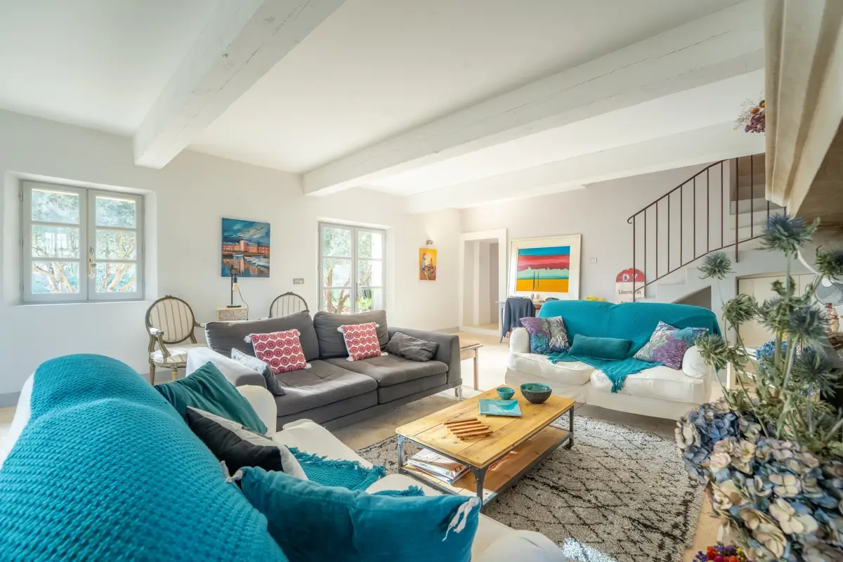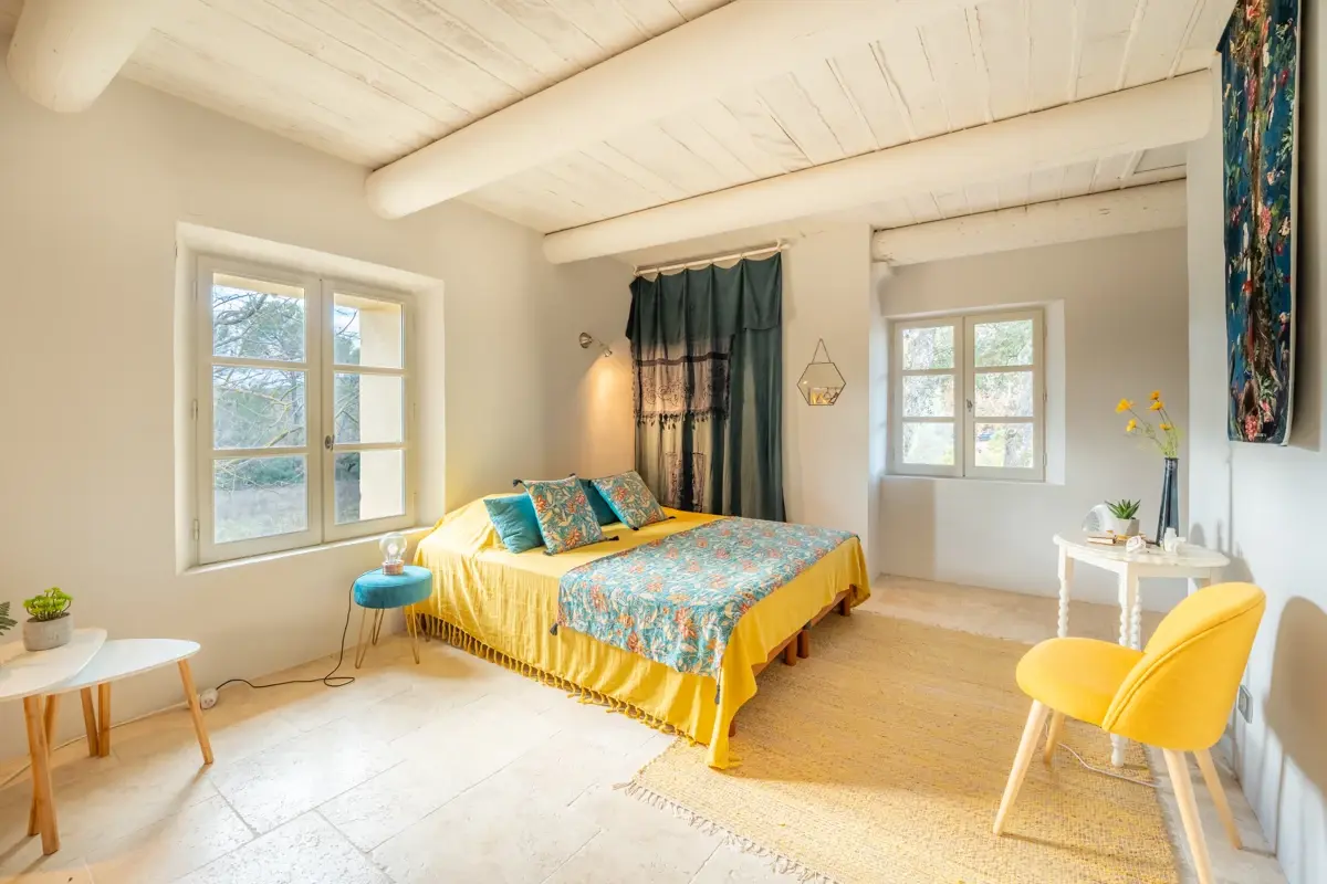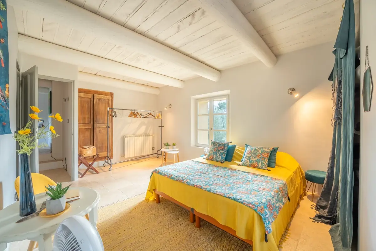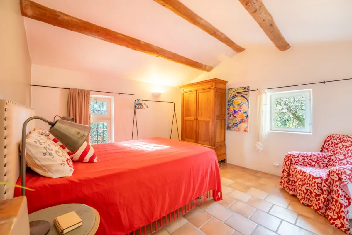 Description intérieure : La maison principale, spacieuse, comprend en rez-de-chaussée une grande pièce de vie avec cuisine ouverte, coin repas avec cheminée, et un salon indépendant donnant sur une large terrasse couverte. À l'étage, trois chambres en suite avec salle d'eau et WC indépendant. Une seconde bâtisse, entièrement en pierre, offre 120 m² supplémentaires avec une cuisine indépendante, un salon avec cheminée au plafond provençal, et trois chambres.