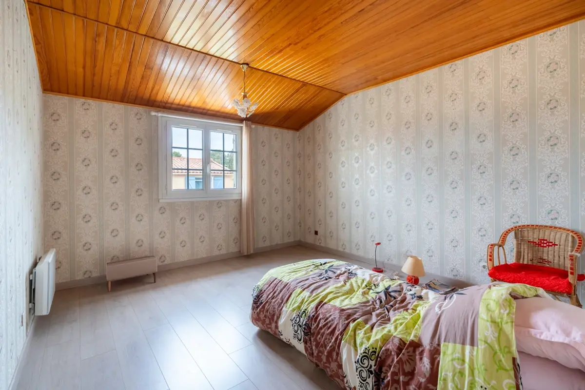 Cette maison lumineuse dispose d'une pièce de vie traversante, d'une cuisine séparée et d'un WC au rez-de-chaussée. L'étage offre trois chambres et une salle de bains avec WC. Le tout sur une parcelle de 387 m² avec un grand garage, une cave et un bel espace extérieur à aménager.
