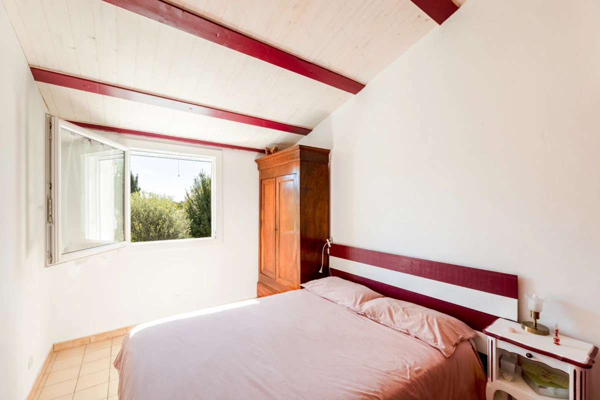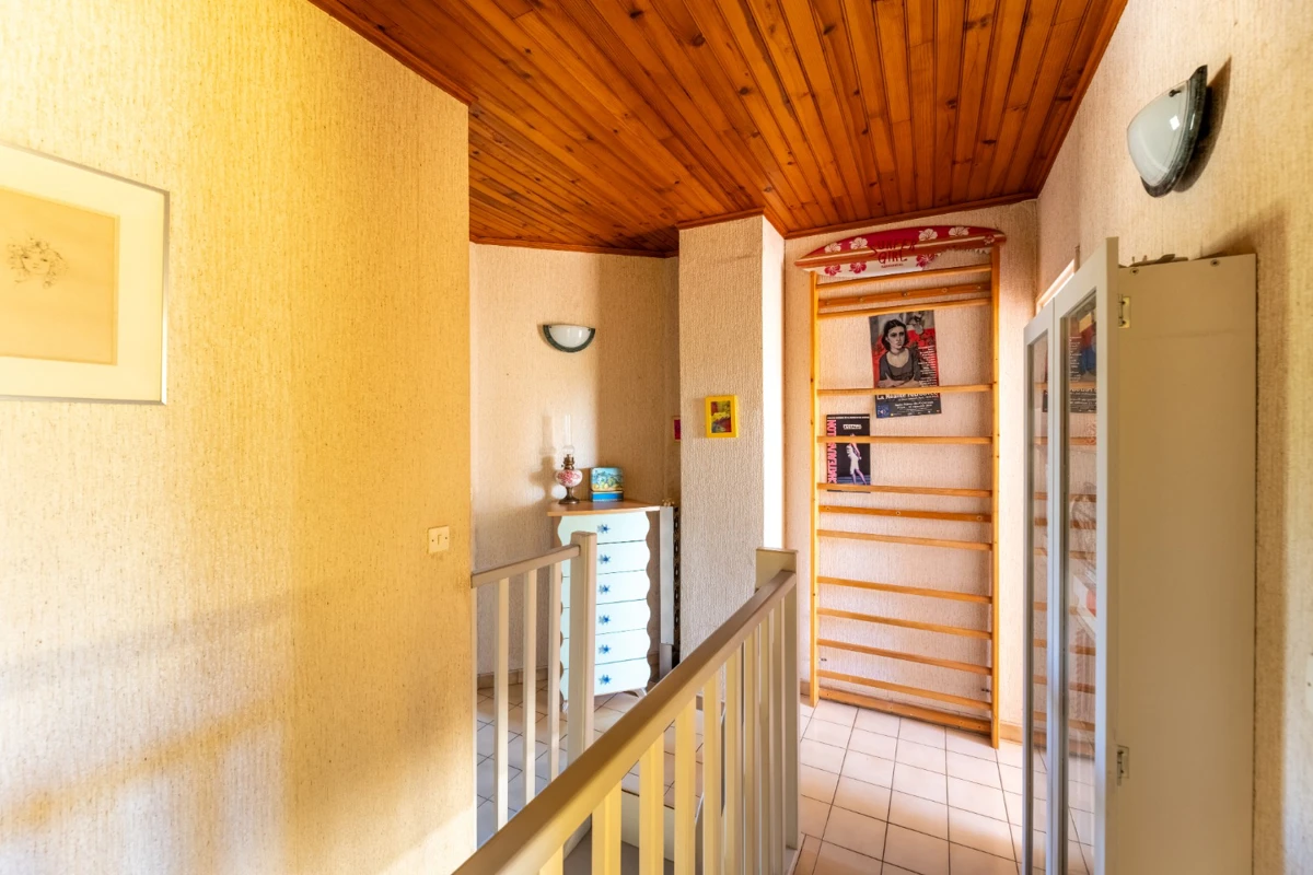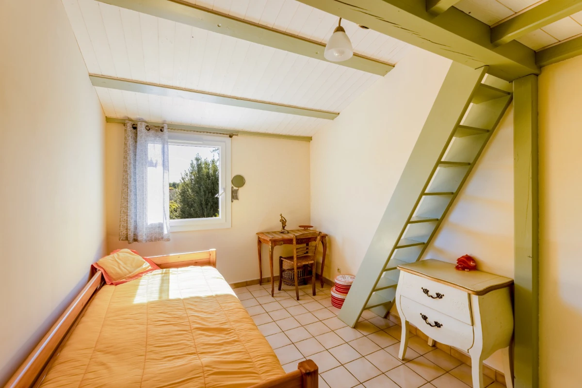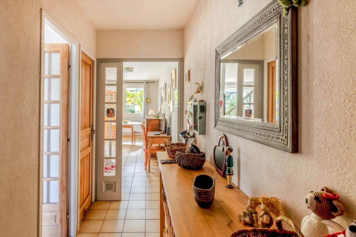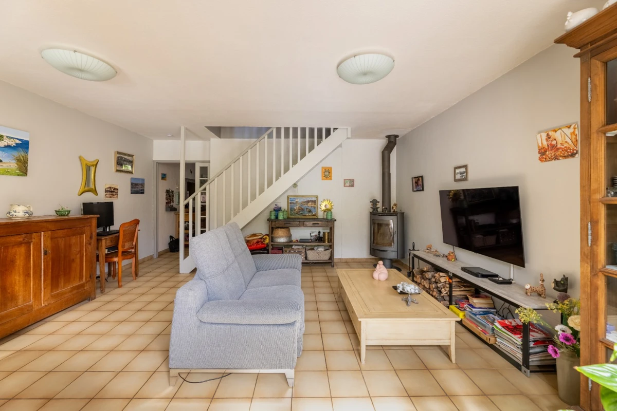 La maison se compose au rez-de-chaussée d'une entrée, une cuisine ouverte sur une terrasse côté nord, une buanderie, un WC et un séjour lumineux agrémenté d'une poêle à bois, donnant accès à une terrasse exposée Sud, ombragée par une pergola avec ses pieds de vigne ainsi qu'au jardin arboré. À l'étage, une partie nuit avec trois chambres dont une avec mezzanine, une salle d'eau avec wc, et un dressing. Chauffage par poêle à bois et électrique, menuiseries PVC avec double vitrage, et isolation thermique extérieure.