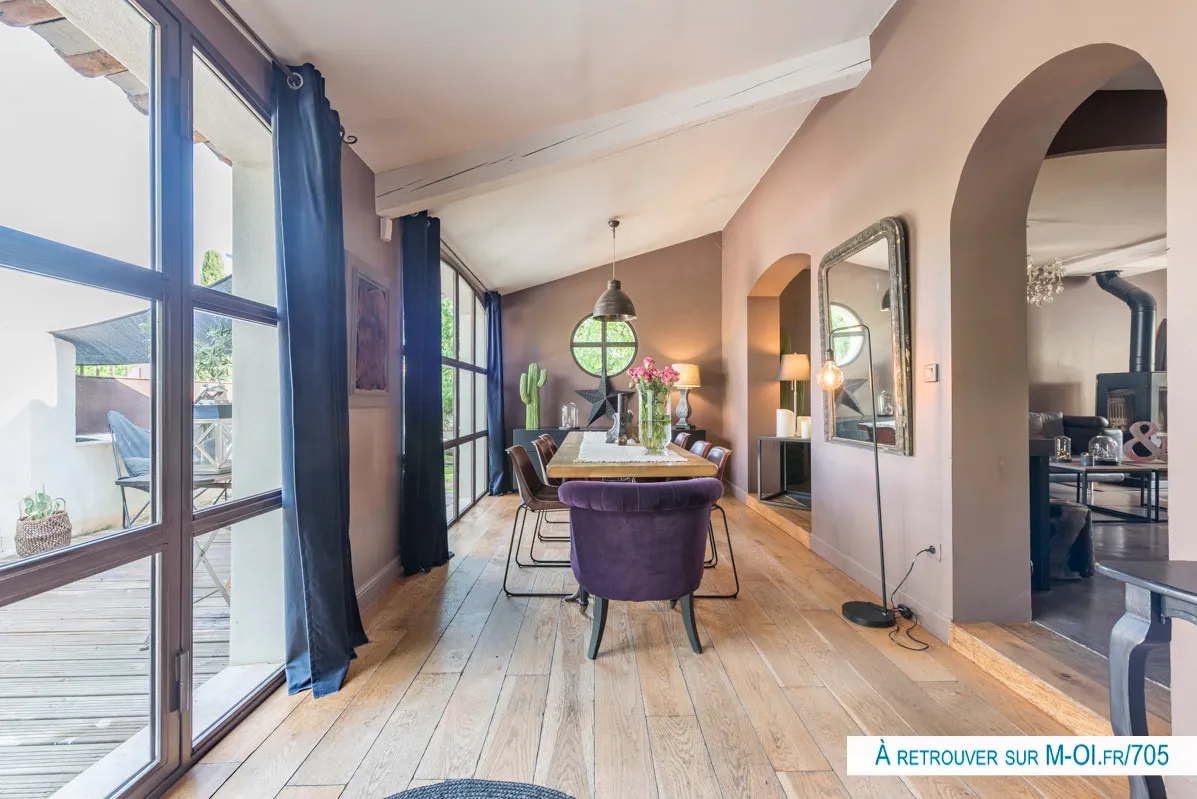Venez découvrir cette très belle maison et ses particularités comme sa belle suite parentale avec vue sur la piscine, séjour avec poêle à bois, piscine chauffée, prestation de belle qualité (béton ciré, chène au sol), rangement à l'exterieur pour rangement motos ...